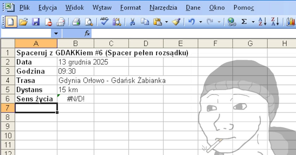 Jeśli Rajd Bez Sensu był dla ludzi szukających guza, to trafiłeś na wydarzenie dla tych, którzy szukają kapci. Zapraszamy na Spaceruj z GDAKKiem #6, czyli Spacer Pełen Rozsądku. Tu nie chodzi o przetrwanie, walkę z żywiołem czy sprawdzanie granic wytrzymałości. Tu chodzi o to, żeby było miło, płasko i bezpiecznie. Aż do porzygu.